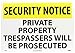 | Feature | Header "SECURITY NOTICE" and legend "PRIVATE PROPERTY TRESPASSERS WILL BE PROSECUTED" |