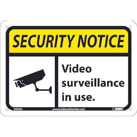 NMC SN39A Security Notice - Video Surveillance in USE Sign - 10 in. x 7 in. Aluminum Notice Sign with Graphic, Black Text on Yellow/White Base