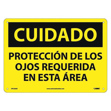 NMC SPC26AB OSHA Sign, Legend "CUIDADO - PROTECCION DE LOS OJOS REQUERIDA EN ESTA AREA", 14" Length x 10" Height, Aluminum, Black on Yellow