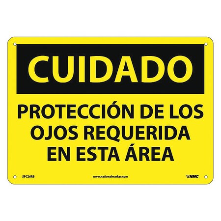 NMC SPC26RB OSHA Sign, Legend "CUIDADO - PROTECCION DE LOS OJOS REQUERIDA EN ESTA AREA", 14" Length x 10" Height, Rigid Plastic, Black on Yellow