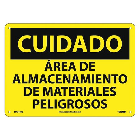 NMC SPC310AB OSHA Sign, Legend "CUIDADO - AREA DE ALMACENAMIENTO DE MATERIALES PELIGROSOS", 14" Length x 10" Height, Aluminum, Black on Yellow