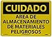 - Header "CUIDADO" and legend "AREA DE ALMACENAMIENTO DE MATERIALES PELIGROSOS"