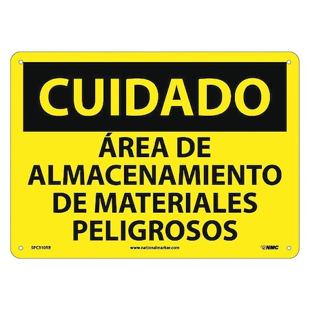 NMC SPC310RB OSHA Sign, Legend "CUIDADO - AREA DE ALMACENAMIENTO DE MATERIALES PELIGROSOS", 14" Length x 10" Height, Rigid Plastic, Black on Yellow