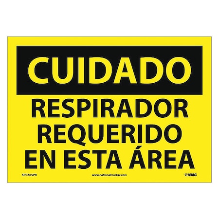 NMC SPC365PB OSHA Sign, Legend "CUIDADO - RESPIRADOR REQUERIDO EN ESTA AREA", 14" Length x 10" Height, Pressure Sensitive Vinyl, Black on Yellow