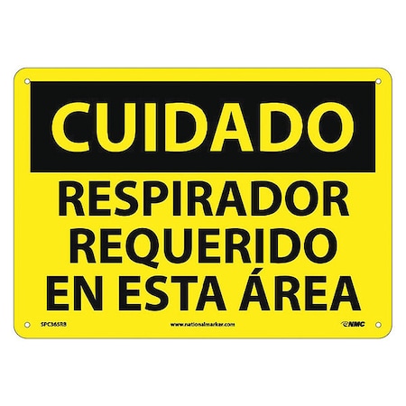 NMC SPC365RB OSHA Sign, Legend "CUIDADO - RESPIRADOR REQUERIDO EN ESTA AREA", 14" Length x 10" Height, Rigid Plastic, Black on Yellow