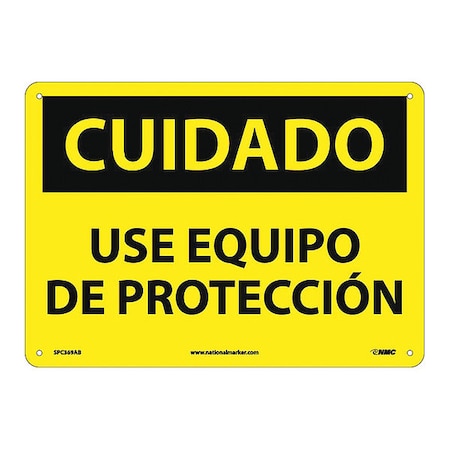 NMC SPC369AB OSHA Sign, Legend "CUIDADO - USE EQUIPO DE PROTECCION", 14" Length x 10" Height, Aluminum, Black on Yellow