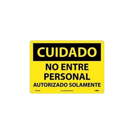 NMC SPC452RB OSHA Sign, Legend "CUIDADO - NO ENTRE PERSONAL AUTORIZADO SOLAMENTE", 14" Length x 10" Height, Rigid Plastic, Black on Yellow