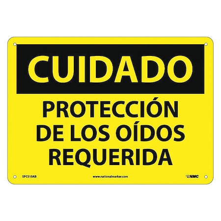 NMC SPC513AB OSHA Sign, Legend "CUIDADO - PROTECCION DE LOS OIDOS REQUERIDA", 14" Length x 10" Height, Aluminum, Black on Yellow