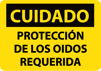 | Feature | Header "CUIDADO" and legend "PROTECCION DE LOS OIDOS REQUERIDA" |