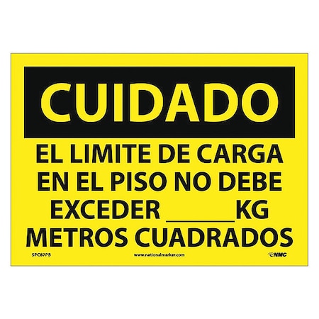 NMC SPC87PB OSHA Sign, Legend "CUIDADO - EL LIMITE DE CARGA EN EL PISO NO DEBE EXCEDER_KG METROS CUADRADOS", 14" Length x 10" Height, Pressure Sensitive Vinyl, Black on Yellow