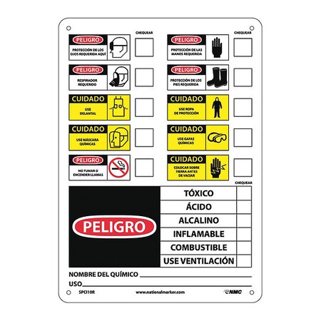 NMC SPCI10R Chemical ID Label, 14" Length x 10" Height, Rigid Plastic