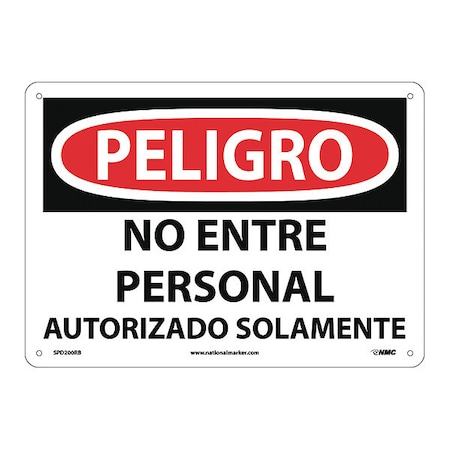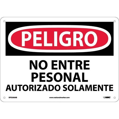 NMC SPD200RB OSHA Sign, Legend "PELIGRO - NO ENTRE PERSONAL AUTORIZADO SOLAMENTE", 14" Length x 10" Height, Rigid Plastic, Black/Red on White