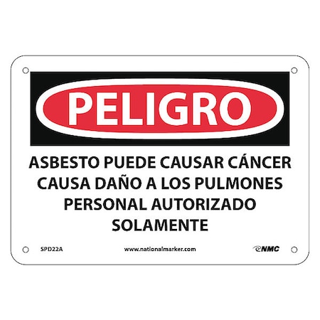 OSHA Sign SPD22 Legend: Peligro Asbestos May Cause Cancer Causes Damage To Lungs Authorized Personnel Only (Spanish)