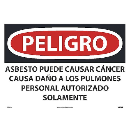 NMC National Marker Corp. SPD22PC Peligro Asbestos May Cause Cancer Causes Damage to Lungs Authorized Personnel Only Sign, 14 Inch X 20 Inch, PS Vinyl