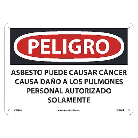 NMC National Marker SPD22RB Peligro Asbestos May Cause Cancer Causes Damage to Lungs Authorized Personnel Only, 10" x 14", Rigid Plastic, Sign