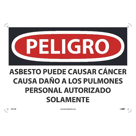 NMC National Marker SPD22RC Peligro Asbestos May Cause Cancer Causes Damage to Lungs Authorized Personnel Only, 14" x 20", Rigid Plastic, Sign