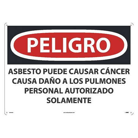 NMC National Marker SPD22RD Peligro Asbestos May Cause Cancer Causes Damage to Lungs Authorized Personnel Only, 20" x 28", Rigid Plastic, Sign