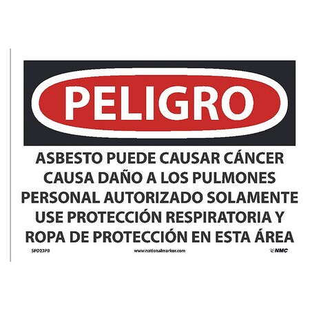NMC's SPD23PB Peligro Asbestos May Cause Cancer Causes Only Wear Respiratory Protection and Protective Clothing in This Area (Spanish) Sign, 10 Inch X 14 Inch, PS Vinyl
