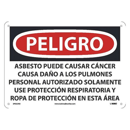 NMC National Marker SPD23RB Peligro Asbestos May Cause Cancer Causes Only Wear Respiratory Protection and Protective Clothing in This Area(Spanish), 10" x 14", Rigid Plastic, Sign