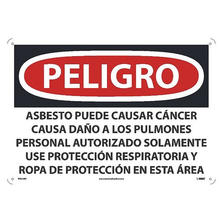 NMC National Marker SPD23RC Peligro Asbestos May Cause Cancer Causes Only Wear Respiratory Protection and Protective Clothing in This Area(Spanish), 14" x 20", Rigid Plastic, Sign