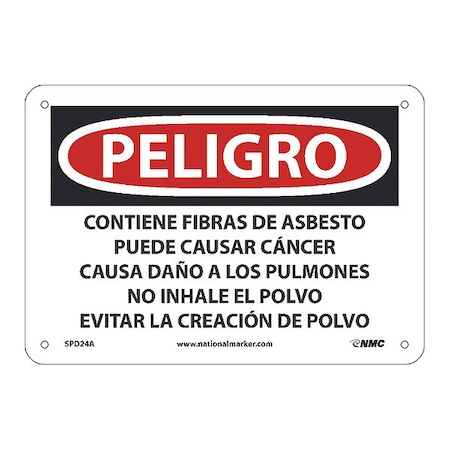 OSHA Sign SPD24 Legend: Danger Contains Asbestos Fibers May Cause Cancer Causes Damage To Lungs Do Not Breathe Dust Avoid Creating Dust (Spanish)