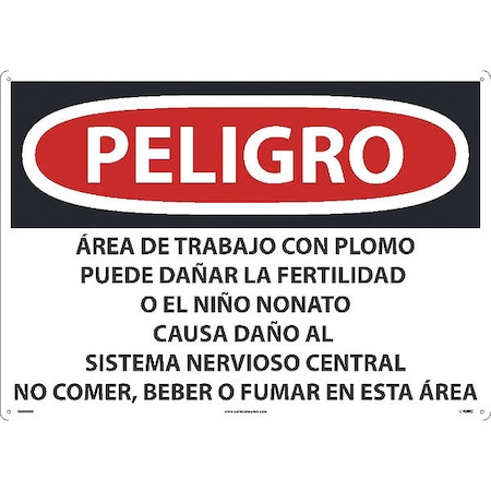 NMC's SPD26AD Peligro Lead Work Area May Damage Fertility Or The Unborn Child Causes Damage to The Central Nervous System (Spanish) Sign, 20 Inch X 28 Inch, 0.040 Alum