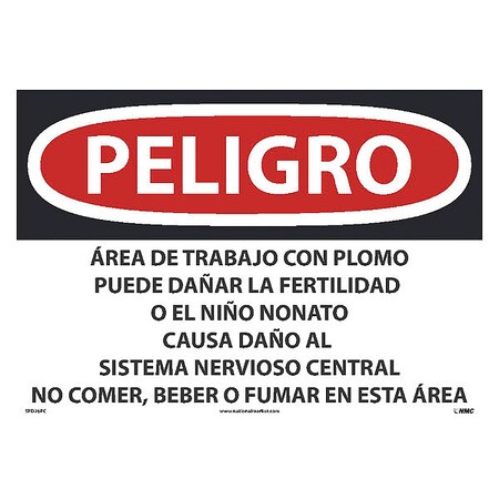 NMC's SPD26PC Peligro Lead Work Area May Damage Fertility Or The Unborn Child Causes Damage to The Central Nervous System (Spanish) Sign, 14 Inch X 20 Inch, PS Vinyl