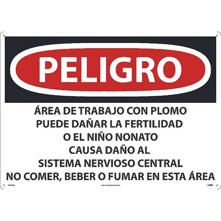 NMC National Marker SPD26RD Peligro Lead Work Area May Damage Fertility Or The Unborn Child, Do Not Eat, Drink Or Smoke in This Area(Spanish), 20" x 28", Rigid Plastic, Sign