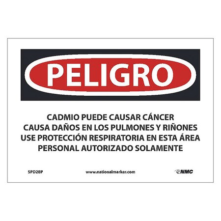 NMC's SPD28P Peligro Cadmium May Cause Cancer Causes Damage to Lungs and Kidneys Wear Respiratory Protection in This Area Authorized Personnel Only (Spanish) Sign, 7 Inch X 10 Inch, PS Vinyl