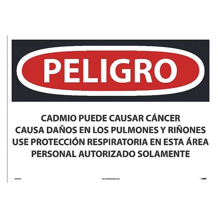 NMC's SPD28PD Peligro Cadmium May Cause Cancer Causes Damage to Lungs and Kidneys Wear Respiratory Protection in This Area Authorized Personnel Only (Spanish) Sign, 20 Inch X 28 Inch, PS Vinyl