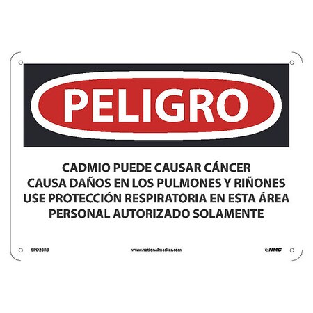 National Marker SPD28RB Peligro Cadmium May Cause Cancer Causes Damage to Lungs and Kidneys Wear Respiratory Protection in This Area Authorized Personnel Only(Spanish), 10" x 14", Rigid Plastic, Sign