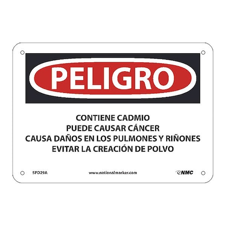 OSHA SPD29 Container Sign (ppe, Waste, Etc. ) , Legend: Peligro Contains Cadmium May Cause Cancer Causes Damage To Lungs and Kidneys Avoid Creating Dust (spanish)