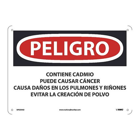 OSHA SPD29 Container Sign (ppe, Waste, Etc. ) , Legend: Peligro Contains Cadmium May Cause Cancer Causes Damage To Lungs and Kidneys Avoid Creating Dust (spanish)
