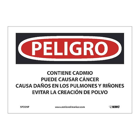 OSHA SPD29 Container Sign (ppe, Waste, Etc. ) , Legend: Peligro Contains Cadmium May Cause Cancer Causes Damage To Lungs and Kidneys Avoid Creating Dust (spanish)