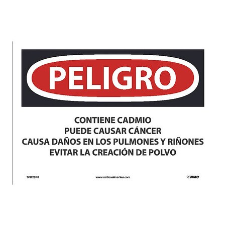 OSHA SPD29 Container Sign (ppe, Waste, Etc. ) , Legend: Peligro Contains Cadmium May Cause Cancer Causes Damage To Lungs and Kidneys Avoid Creating Dust (spanish)