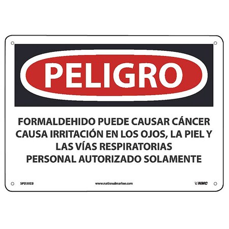 NMC National Marker SPD30EB Peligro Formaldehyde May Cause Cancer Causes Skin, Eye, and Respiratory Irritation Authorized Personnel Only(Spanish), 10" x 14", Fiberglass, Sign