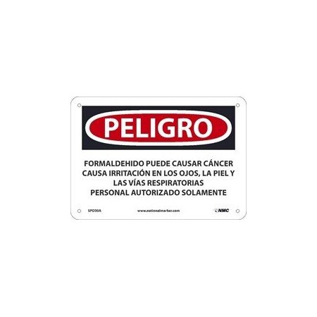 NMC National Marker Corp. SPD30P Peligro Formaldehyde May Cause Cancer Causes Skin, Eye, and Respiratory Irritation Authorized Personnel Only (Spanish) Sign, 7 Inch X 10 Inch, PS Vinyl