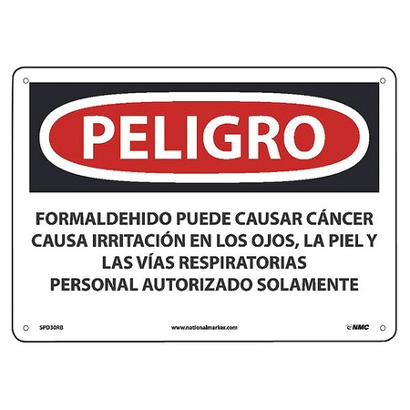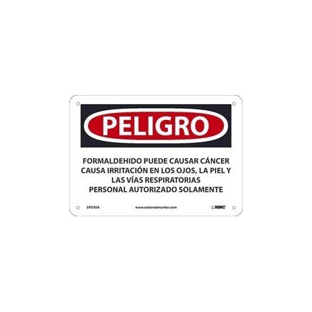 National Marker SPD30RB Peligro Formaldehyde May Cause Cancer Causes Skin, Eye, and Respiratory Irritation Authorized Personnel Only(Spanish), 10" x 14", Rigid Plastic, Sign
