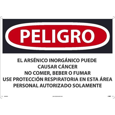 OSHA Sign SPD32 Legend: Peligro Inorganic Arsenic May Cause Cancer Do Not Eat, Drink Or Smoke Wear Respiratory Protection In This Area Authorized Personnel Only (spanish)
