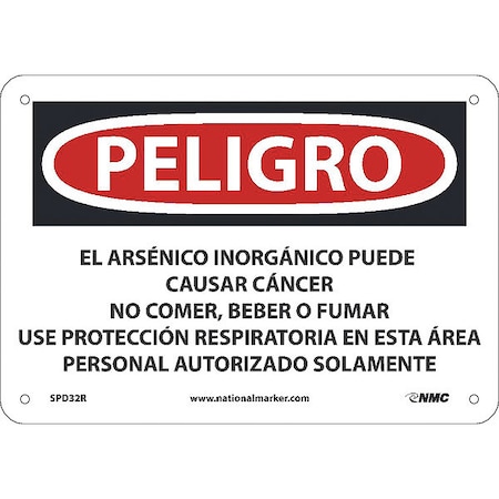NMC National Marker SPD32R Peligro Inorganic Arsenic May Cause Cancer Do Not Eat, Drink Or Smoke Wear Respiratory Protection in This Area Authorized Personnel Only(Spanish), 7" x 10", Rigid Plastic, Sign