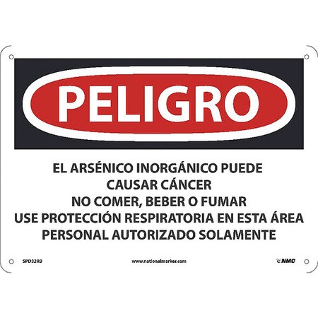 NMC National Marker SPD32RB Peligro Inorganic Arsenic May Cause Cancer Do Not Eat, Drink Or Smoke Wear Respiratory Protection in This Area(Spanish), 10" x 14", Rigid Plastic, Sign