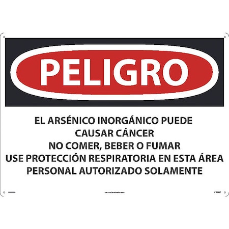 NMC National Marker SPD32RD Peligro Inorganic Arsenic May Cause Cancer Do Not Eat, Drink Or Smoke Wear Respiratory Protection in This Area(Spanish), 20" x 28", Rigid Plastic, Sign