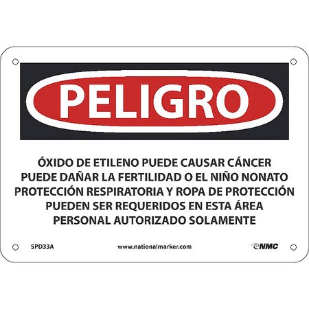 OSHA Sign SPD33 Legend: Peligro Ethylene Oxide May Cause Cancer May Damage Fertility Or The Unborn Child Respiratory . . . Area Authorized Personnel Only (spanish)