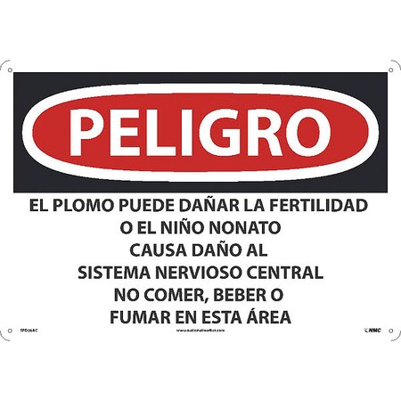 NMC's SPD36AC Peligro Lead May Damage Fertility Or The Unborn Child Causes Damage to The Central Nervous System Do Not Eat, Drink Or Smoke in This Area (Spanish) Sign, 14 Inch X 20 Inch, 0.040 Alum