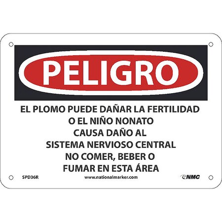 NMC National Marker SPD36R Peligro Lead, Do Not Eat, Drink Or Smoke in This Area(Spanish), 7" x 10", Rigid Plastic, Sign