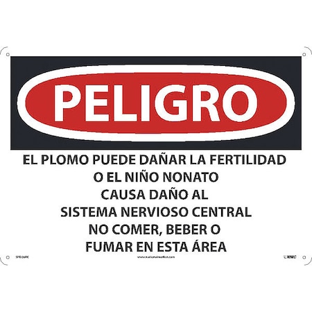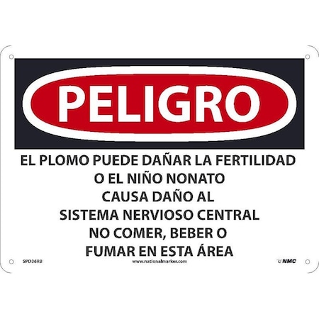 OSHA Sign SPD36 Legend: Peligro Lead May Damage Fertility Or The Unborn Child Causes Damage To The Central Nervous System Do Not Eat, Drink Or Smoke In This Area (spanish)