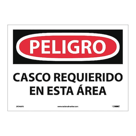 NMC SPD46PB OSHA Sign, Legend "PELIGRO - CASCO REQUERIDO EN ESTA AREA", 14" Length x 10" Height, Rigid Plastic, Black/Red on White