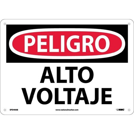 NMC SPD49RB OSHA Sign, Legend "PELIGRO - ALTO VOLTAJE", 14" Length x 10" Height, Aluminum, Black/Red on White