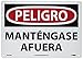 | Feature | Header "PELIGRO" and legend "MANTENGASE AFUERA" |