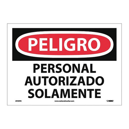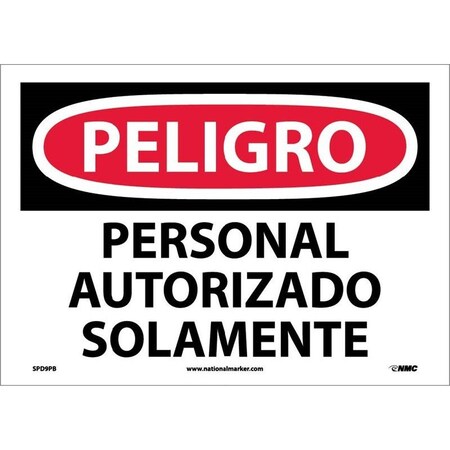 NMC SPD9PB OSHA Sign, Legend "PELIGRO - PERSONAL AUTORIZADO SOLAMENTE", 14 Length x 10" Height, Pressure Sensitive Vinyl, Black/Red on White